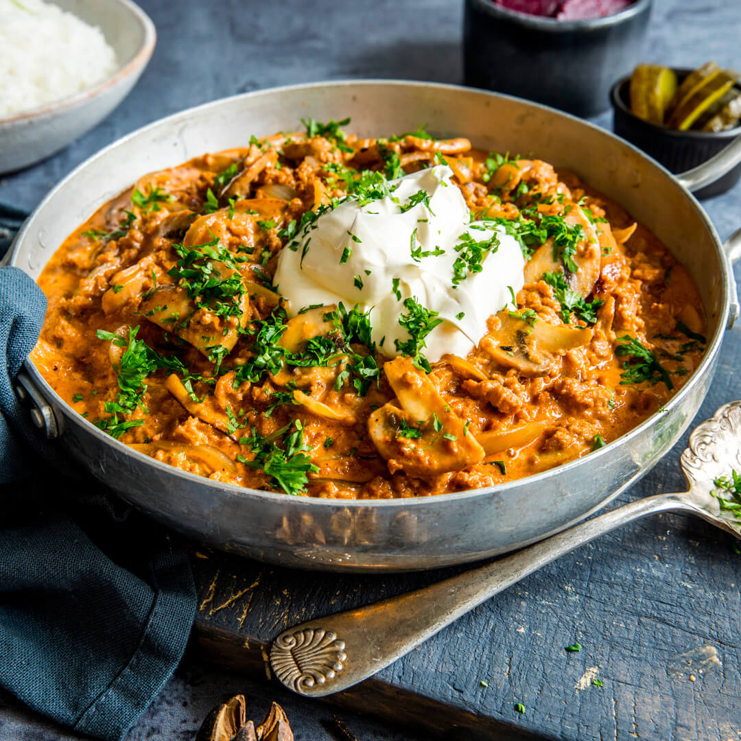 Stroganoff m/ris og salat